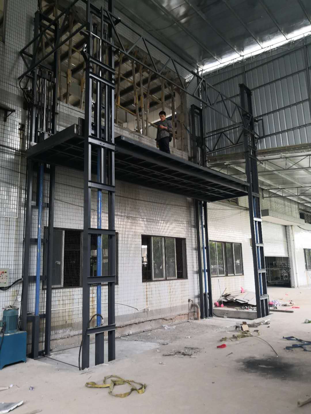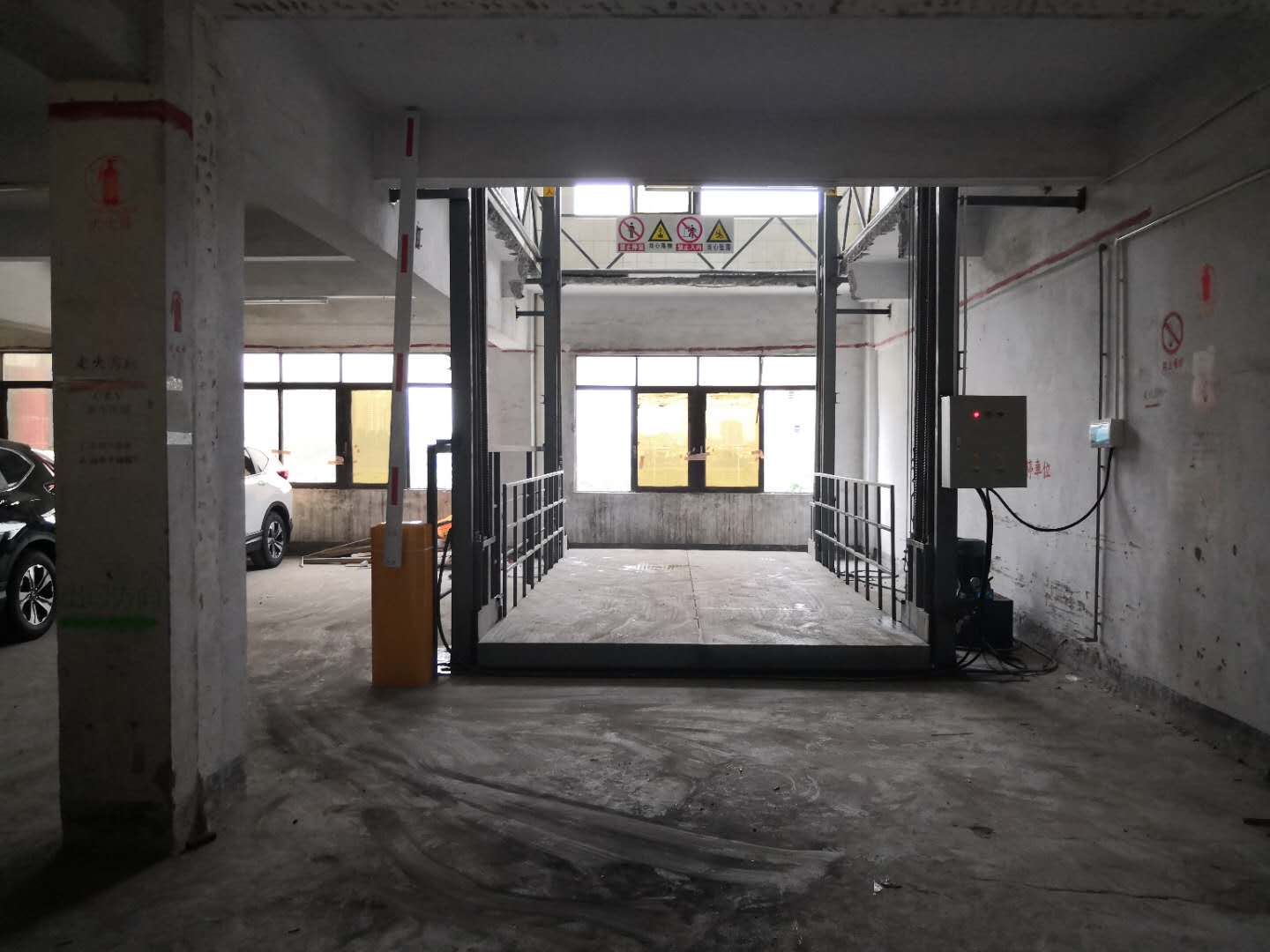 四柱式升降平臺(tái)采用了四角立柱+液壓油缸+板式鏈條+鋼絲繩等4重安全防護(hù),且各樓層間設(shè)有限位開(kāi)關(guān)及緩沖設(shè)備,緩解了升降平臺(tái)到達(dá)制定樓層時(shí)的緩沖力,且平臺(tái)設(shè)有緊急停止按鈕、緊急下降按鈕等,為各類突發(fā)事項(xiàng)做好了萬(wàn)全準(zhǔn)備。